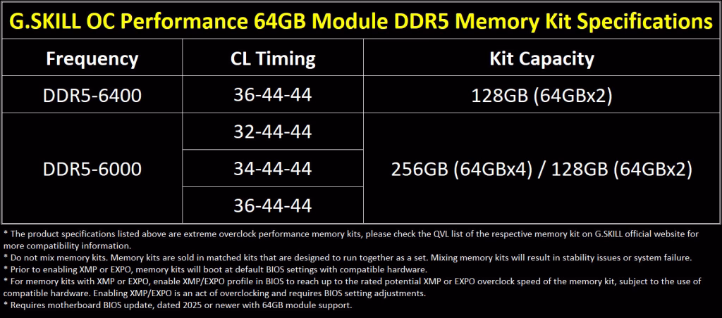 G.SKILL menawarkan beberapa konfigurasi untuk kit 256 GB DDR5 ini: