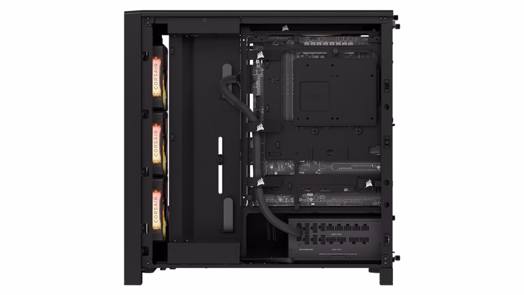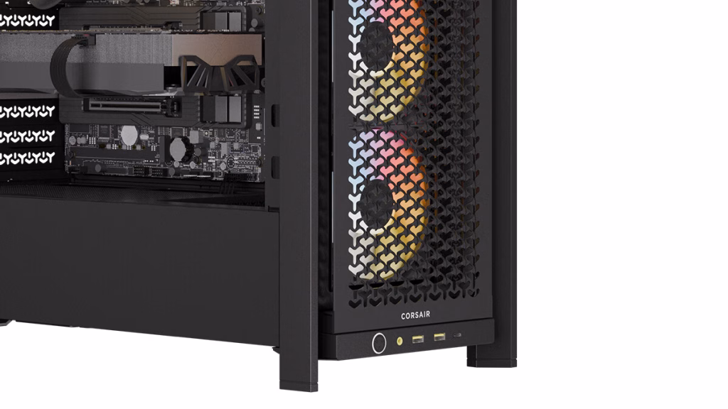 Sistem ini dibangun di atas casing Corsair 6500D AIRFLOW, yang menawarkan panel mesh besar di bagian depan dan samping untuk ventilasi optimal. Casing ini mendukung konfigurasi kipas dan radiator ekstensif, dan dalam paket ini dilengkapi pendingin cair Corsair iCUE H150i RGB untuk menjaga suhu prosesor tetap stabil di bawah beban tinggi.