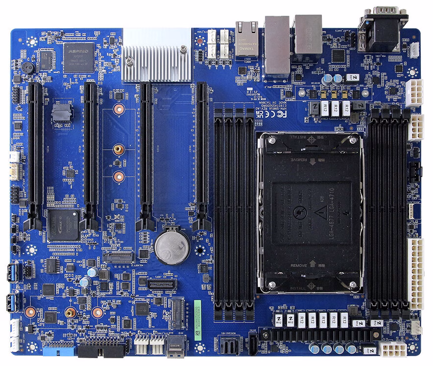 Motherboard HPM-GNRUA menggunakan socket LGA 4677, kompatibel dengan prosesor Intel Xeon generasi terbaru, serta mendukung chipset Intel C741, yang memberikan bandwidth tinggi dan konektivitas I/O mutakhir. Produk ini juga mendukung PCIe 5.0, memungkinkan penggunaan GPU, FPGA, atau akselerator AI generasi baru dengan throughput maksimal.