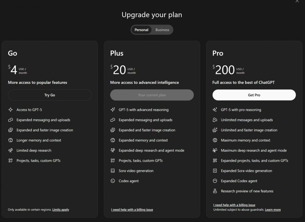 Sementara itu, ChatGPT Plus tetap menjadi pilihan utama bagi pengguna yang membutuhkan fungsionalitas lebih kaya, seperti kemampuan agent dan generasi video. Dengan adanya paket Go, OpenAI berharap dapat menjangkau basis pengguna lebih luas, khususnya di pasar dengan daya beli yang lebih sensitif terhadap harga.