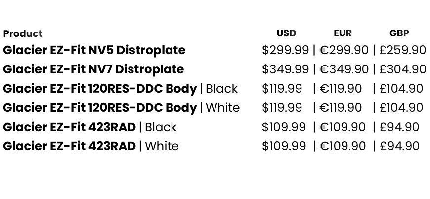 Sistem Glacier EZ-Fit memungkinkan pemasangan komponen water cooling—seperti blok CPU dan GPU, radiator, serta reservoir—secara plug-and-play. Fitur utama kini mencakup: