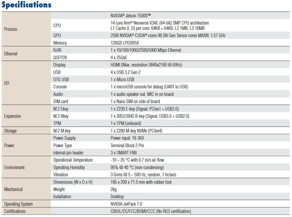 MIC-743 menjadi salah satu sistem pertama yang mengintegrasikan Jetson Thor, modul terbaru dari NVIDIA yang dirancang khusus untuk akselerasi AI di edge. Jetson Thor menawarkan hingga 800 TFLOPS performa AI, memanfaatkan arsitektur GPU NVIDIA terbaru dan dukungan penuh terhadap model AI besar (Large Language Models/LLM) serta workload komputer vision real-time.
