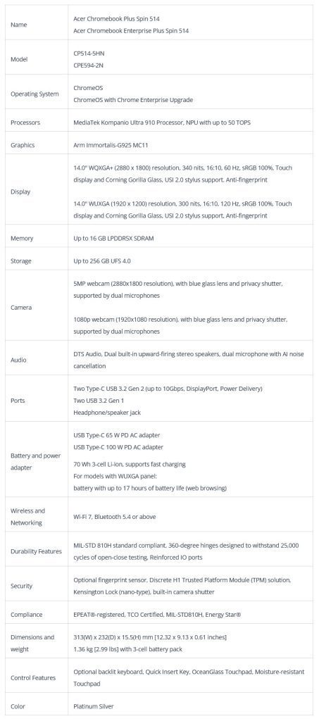 Acer Chromebook Plus Spin 514 Resmi Hadir: Chromebook Pertama dengan MediaTek Kompanio Ultra