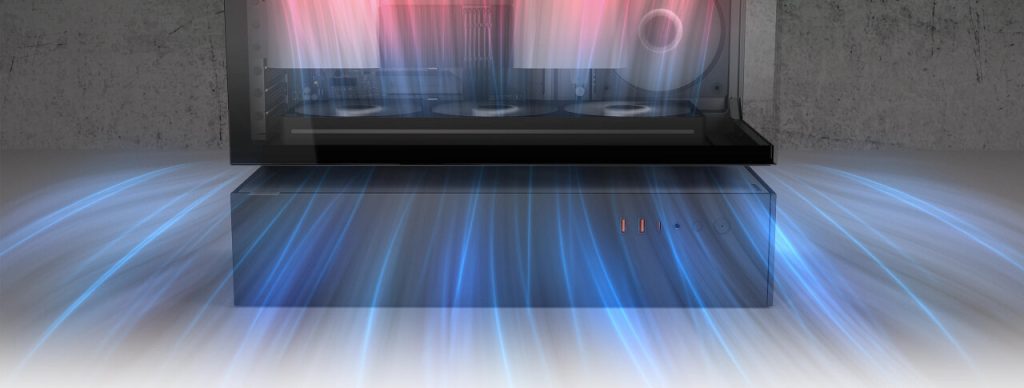 - Mengusung konsep Central Floating Ventilation (CFV), yaitu ruang ventilasi terbuka di antara PSU dan main chamber untuk meningkatkan aliran udara.