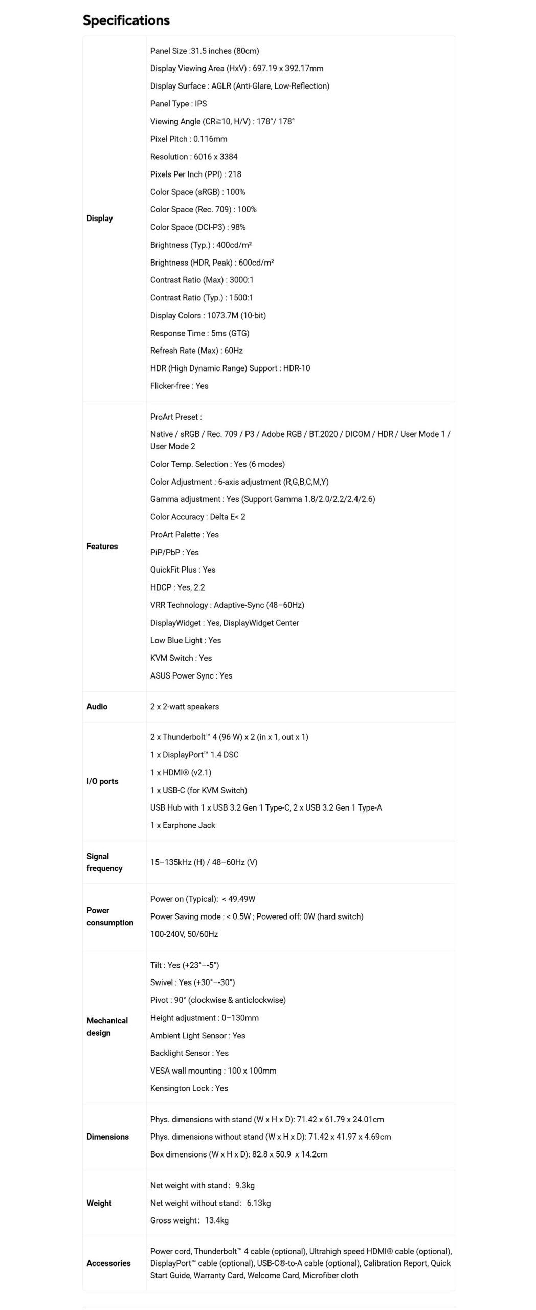 PA32QCV menawarkan kerapatan piksel 218 PPI, lebih dari 3,1 kali lipat dibanding monitor FHD 32 inci. Hal ini membuat teks lebih tajam, detail gambar lebih jelas, serta ruang kerja 145% lebih luas dibanding monitor 4K dengan ukuran sama. Dukungan HDR10 dan sertifikasi VESA DisplayHDR 600 memastikan kontras tinggi dengan warna hitam pekat dan putih terang, memberikan tampilan realistis untuk pekerjaan kreatif.