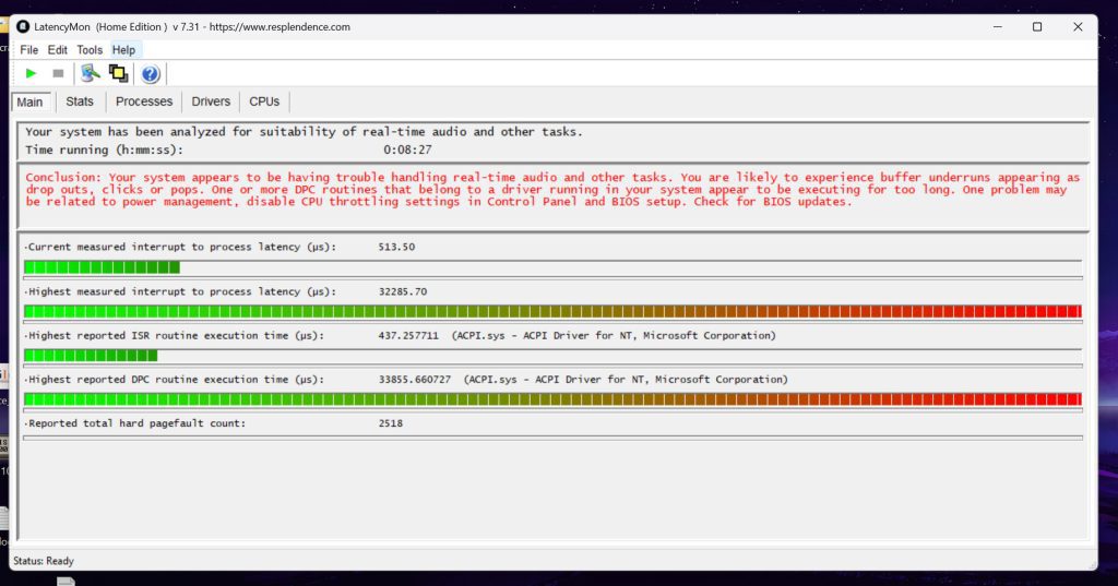 Zephkek menggunakan alat LatencyMon untuk mengukur CPU interrupt latency. Hasilnya menunjukkan bahwa pada model seperti ASUS Zephyrus M16, core pertama CPU menghabiskan lebih dari 90 detik hanya untuk memproses interrupt, sehingga core tersebut tidak bisa menjalankan tugas lain. Hal ini menimbulkan stuttering pada aplikasi atau beban kerja yang sensitif terhadap waktu.