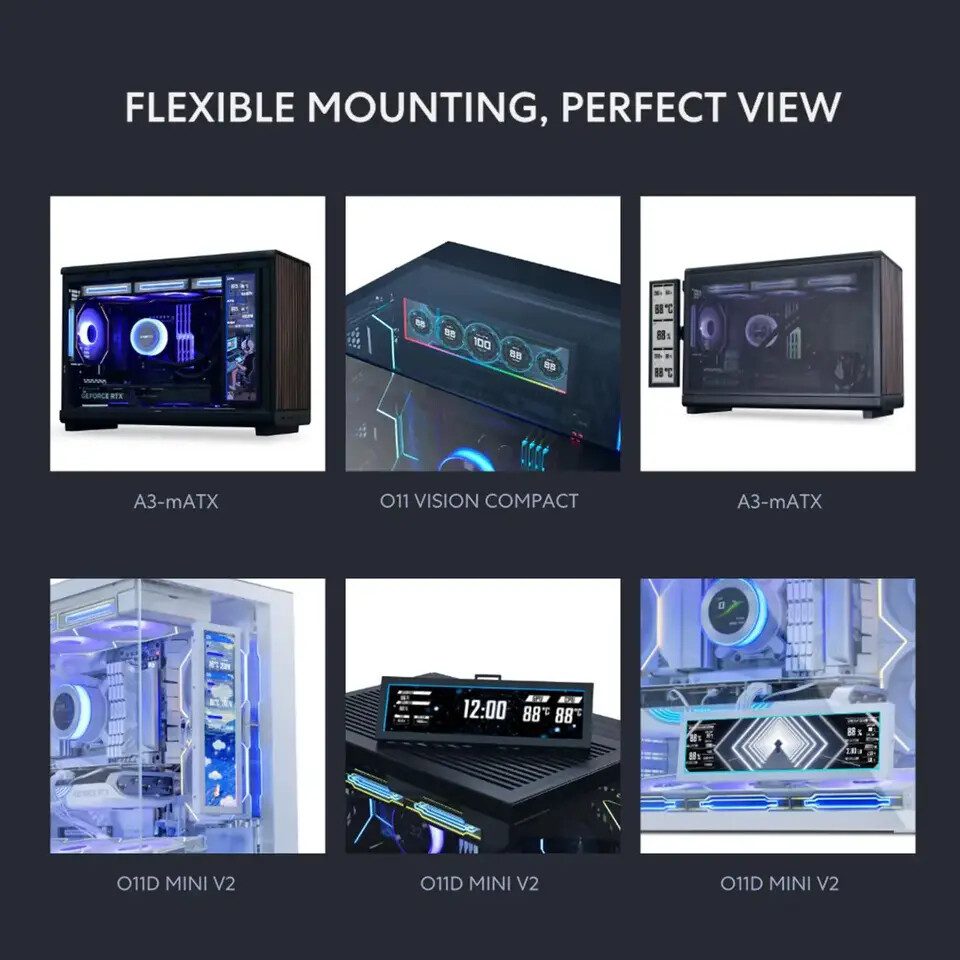 LIAN LI Industrial Co., Ltd., produsen terkemuka aksesori dan sasis PC, memperkenalkan 8.8″ Universal Screen (US88v1), sebuah layar sekunder serbaguna yang dapat digunakan untuk menampilkan statistik sistem, konten media, hingga tampilan personalisasi tanpa memerlukan output GPU tambahan.