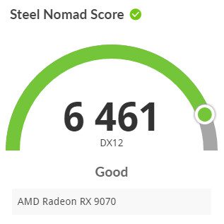Dengan BIOS default, RX 9070 non-XT milik pengguna tersebut mencatat skor 5.821 poin pada benchmark 3DMark Steel Nomad. Setelah diganti dengan BIOS XT, skor meningkat menjadi 6.461 poin, atau naik sekitar 11%.