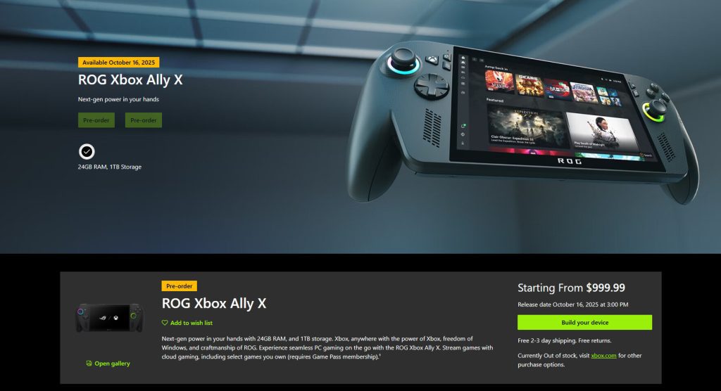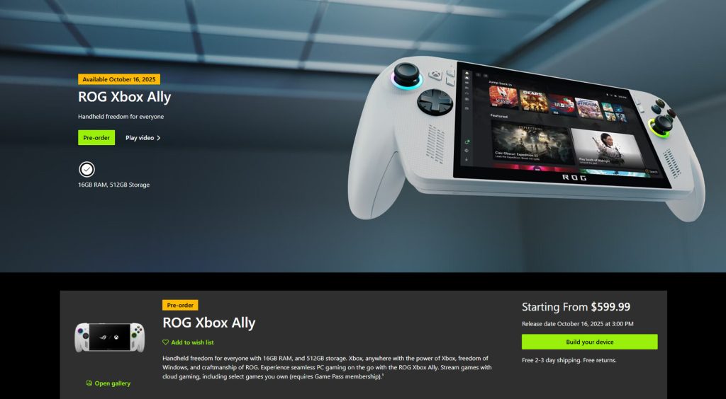 ASUS Republic of Gamers (ROG) resmi mengumumkan dimulainya pre-order untuk perangkat gaming handheld terbaru mereka, ROG Xbox Ally dan ROG Xbox Ally X, yang dikembangkan bersama Xbox. Pemesanan telah dibuka pada 26 September 2025 di sejumlah pasar global, dengan harga mulai $599,99 untuk ROG Xbox Ally dan $999,99 untuk ROG Xbox Ally X.