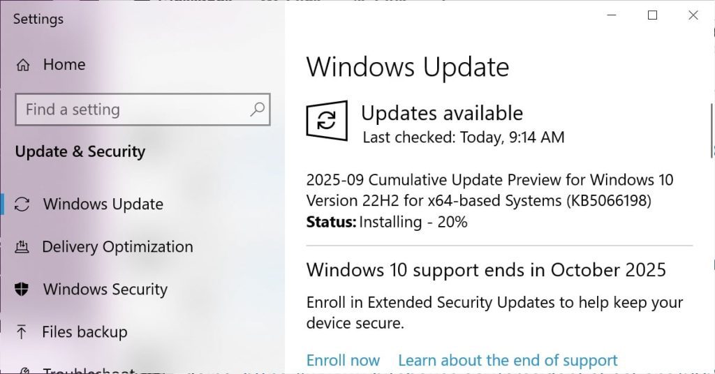 Pengguna dapat menginstal KB5066198 melalui menu:Settings > Update & Security > Windows Update > Check for updates
