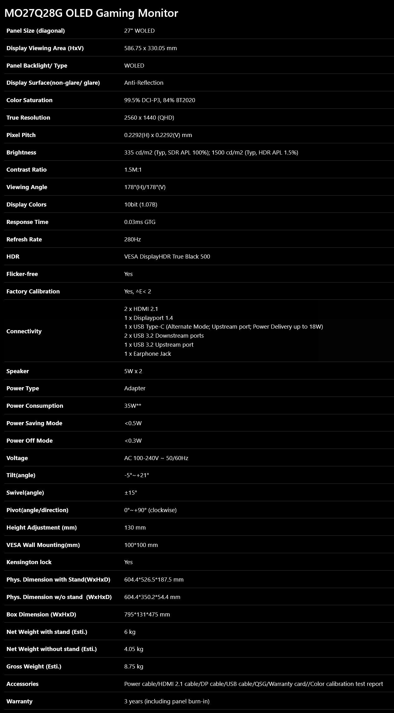 Monitor MO27Q28G menggunakan panel LG Display WOLED 4th Gen dengan teknologi Primary RGB Tandem OLED, menghadirkan peningkatan besar dalam performa dan efisiensi: