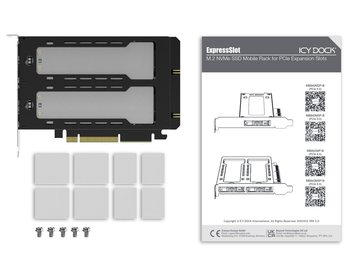 Icy Dock memperkenalkan ExpressSlot Elite MB842M5P-B, adaptor inovatif yang mengubah slot ekspansi PCIe x8/x16 menjadi dua bay M.2 NVMe hot-swap, memungkinkan pengguna mengganti SSD dengan cepat tanpa harus membuka casing komputer.