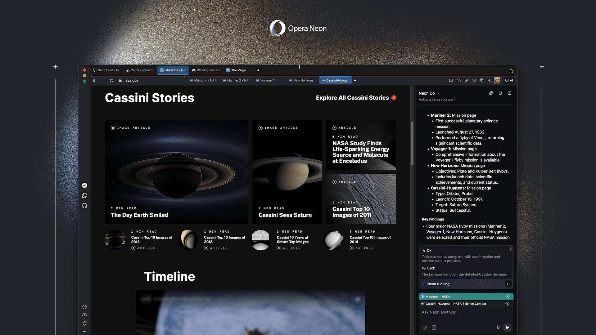 Opera menggambarkan Neon sebagai browser yang “bekerja untuk Anda” — mulai dari: