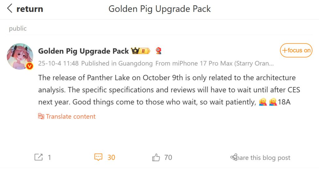 Intel bersiap untuk mengungkap lebih banyak detail mengenai mikroarsitektur “Panther Lake”, produk pertama yang menggunakan proses fabrikasi Intel 18A, dalam acara deep dive teknis pada 9 Oktober 2025. Namun, peluncuran resmi dan spesifikasi final dari lini prosesor ini baru akan dilakukan di ajang CES 2026.