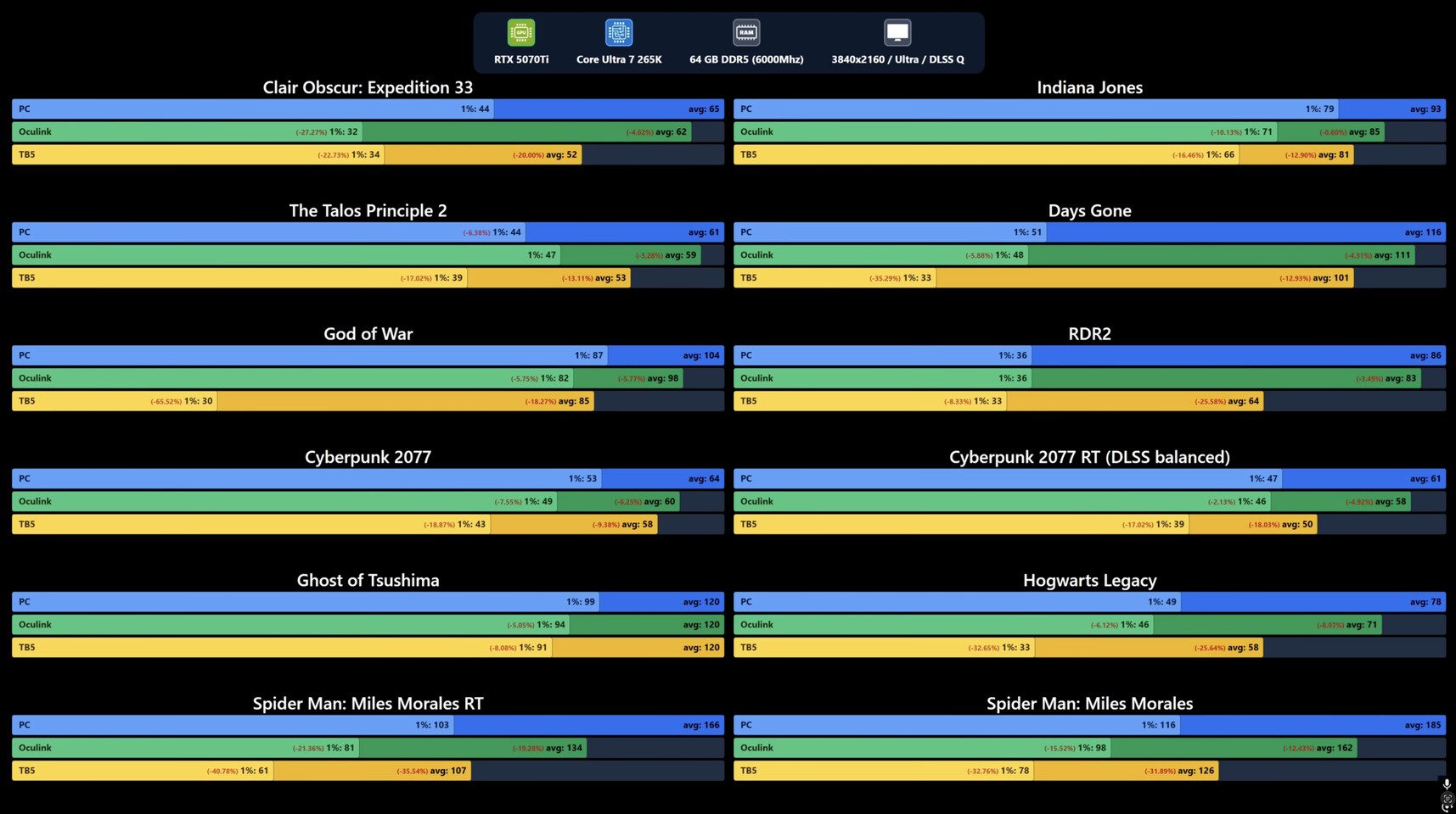 OCuLink mencatat peningkatan performa gaming hingga 16.28% dibandingkan Thunderbolt 5, terutama pada judul-judul berat seperti: