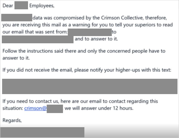 Kelompok ini mengaku bertanggung jawab atas serangan terhadap Red Hat, di mana mereka berhasil mengekstraksi 570 GB data dari ribuan repositori GitLab privat, lalu menekan perusahaan agar membayar tebusan. Setelah insiden tersebut diungkap, Crimson Collective juga berkolaborasi dengan Scattered Lapsus$ Hunters untuk meningkatkan tekanan pemerasan terhadap Red Hat.