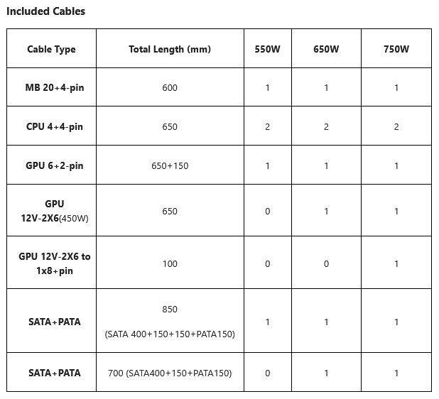 Model 750 W juga disertai kabel tambahan 12V-2×6 ke PCIe 6+2 pin, memberikan fleksibilitas untuk GPU kelas atas AMD atau perangkat multi-kartu grafis.
