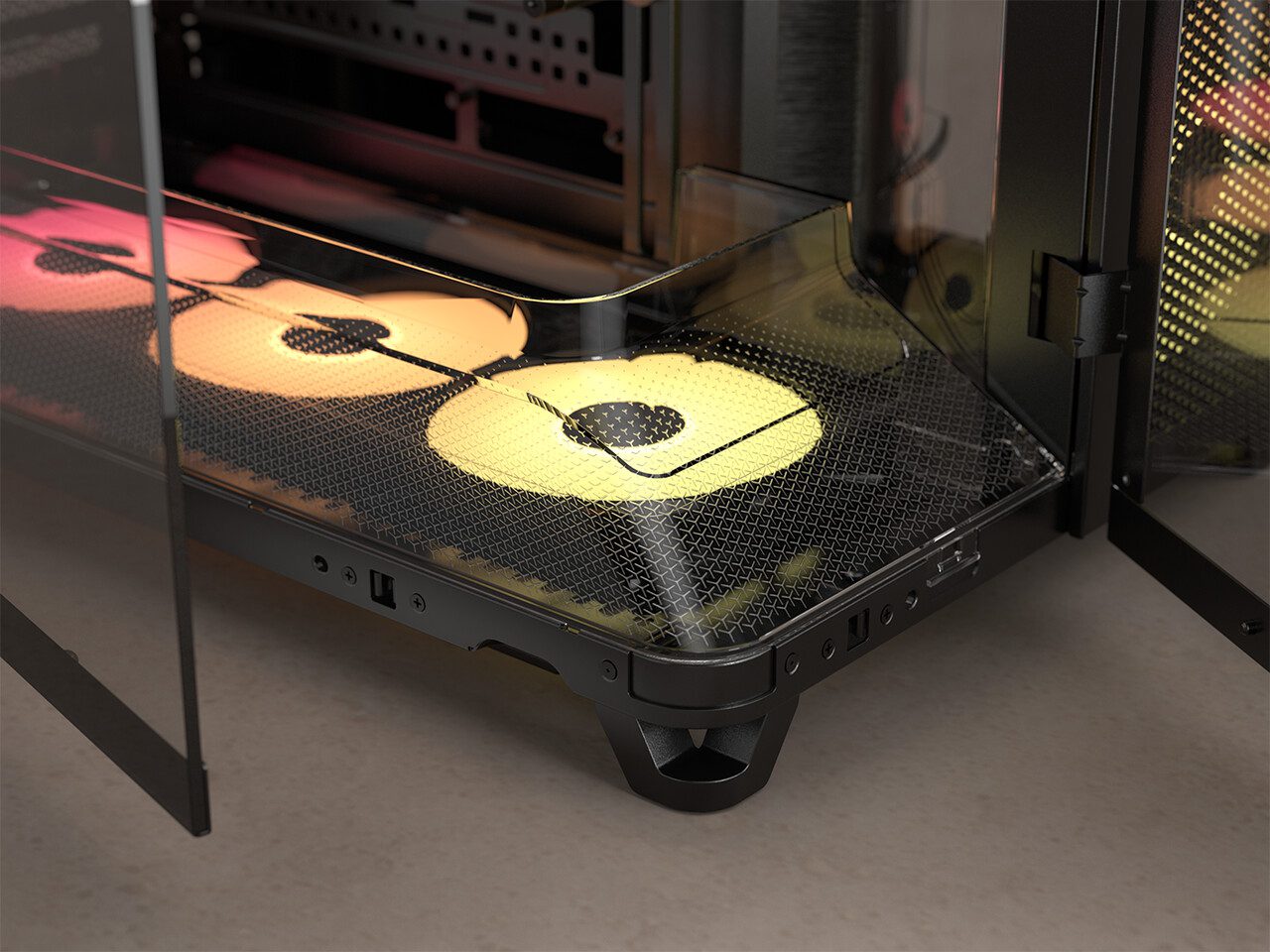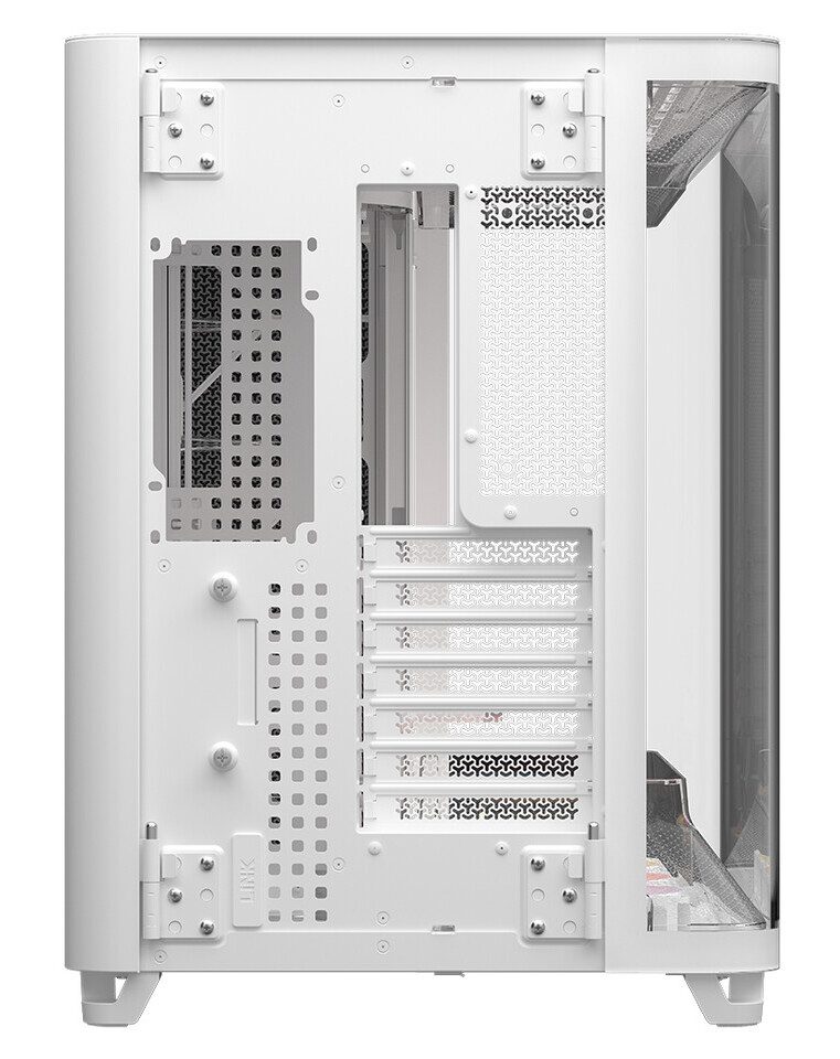Buka kedua sisi casing tanpa alat — sempurna untuk pamer build Anda dari setiap sudut.