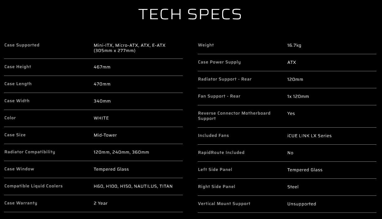 Kedua model menampilkan reverse-rotor RGB fan dengan pencahayaan penuh dan tingkat kebisingan rendah, sementara versi iCUE LINK memungkinkan pengaturan kipas per-unit dan monitoring suhu secara real-time.