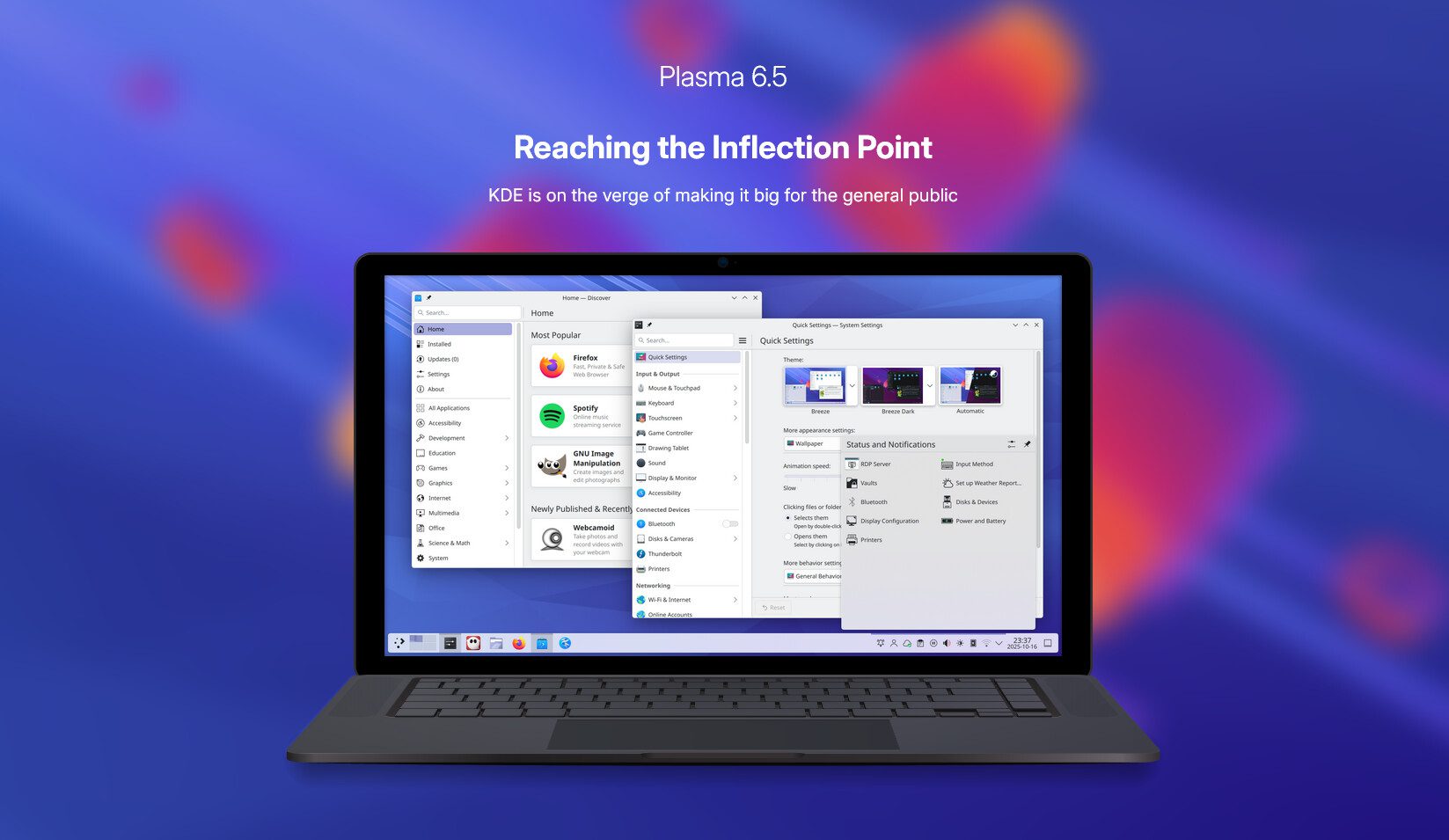 KDE resmi meluncurkan Plasma 6.5, versi terbaru dari desktop environment andalan komunitas open-source yang kini berusia hampir tiga dekade. Setelah 29 tahun pengembangan, KDE fokus pada penyempurnaan pengalaman pengguna: meningkatkan performa, menambah fitur cerdas, dan memperhalus tampilan agar desktop Plasma semakin intuitif dan elegan.