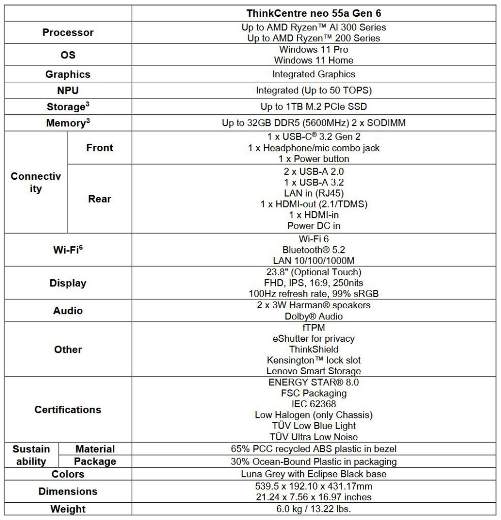 - ThinkCentre neo 55a Gen 6 (AIO): mulai $549
