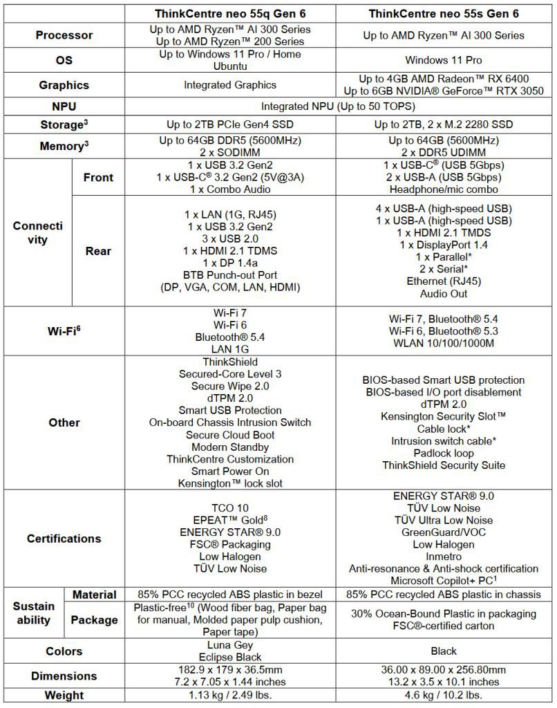 - ThinkCentre neo 55s Gen 6 (SFF): mulai $479