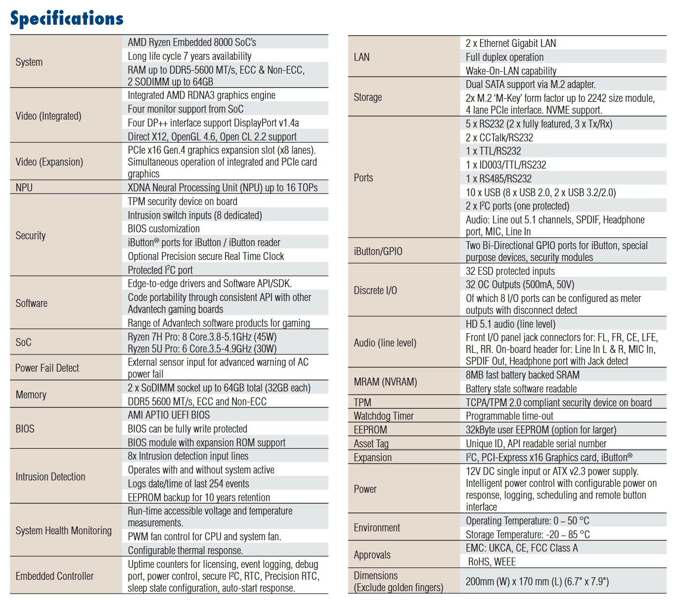 | Prosesor | AMD Ryzen Embedded 8000 Series (Zen 4) |