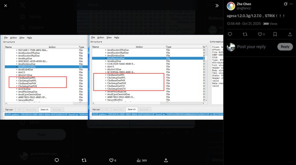 Informasi ini pertama kali disorot oleh leaker terkenal @9550pro di X (Twitter), yang menemukan bahwa kode AGESA versi 1.2.7.0 terbaru menyebutkan Strix Point dalam daftar dukungannya. Penemuan ini diperkuat oleh pengguna lain, @xgfancz, yang mempublikasikan daftar arsitektur pada update AGESA beta tersebut, memperlihatkan entri bertuliskan “STX” (kemungkinan besar singkatan dari Strix Point) berdampingan dengan “PHX” (Phoenix Point), basis dari Ryzen 8000G Series saat ini.
