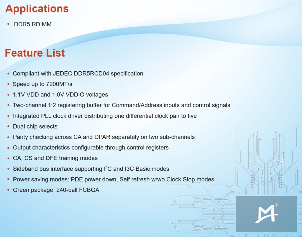 Chip RCD04 mendukung kecepatan transfer data hingga 7200 MT/s, meningkat lebih dari 12,5% dibandingkan generasi sebelumnya.