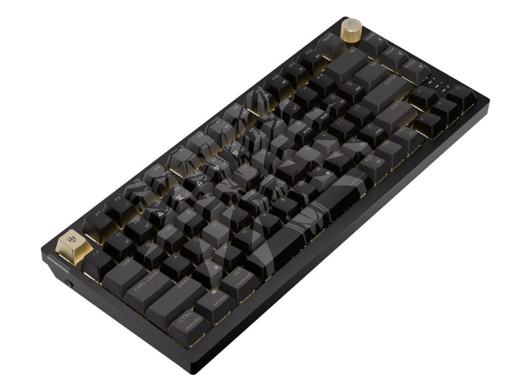 Keyboard mekanik nirkabel ini hadir dalam layout 75% (NA only) dan menampilkan sentuhan visual khas The Witcher 3.- Terdapat simbol “Witcher Signs” pada keycap, memudahkan pemain untuk mengakses mantra ikonik seperti Aard dan Igni.