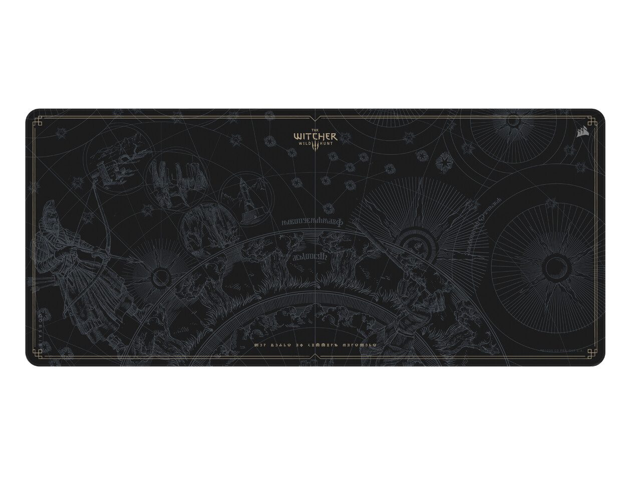 Permukaannya menampilkan peta astral “The Spiral” dan simbol-simbol magis ikonik dari dunia The Witcher, memberikan kesan tematik yang menyatu di meja kerja atau gaming setup Anda.