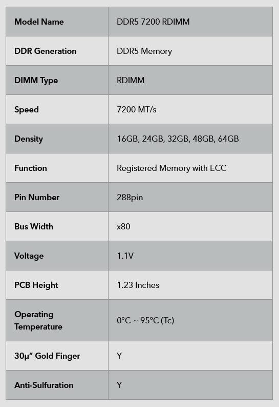 Selain varian RDIMM, Innodisk juga akan merilis seluruh seri DDR5-7200 lainnya sebelum Q1 2026, meliputi: