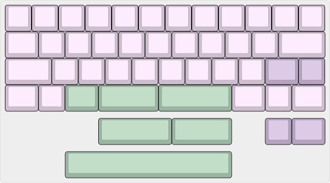 • Dua split spacebar (2.25u + 2.75u) — bisa disesuaikan di sisi kiri atau kanan.