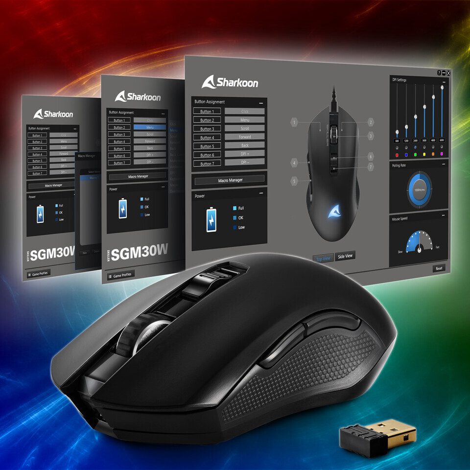 SKILLER SGM30W dilengkapi 7 tombol yang dapat disesuaikan melalui perangkat lunak gaming Sharkoon. Pengguna dapat: