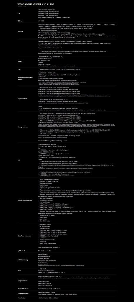 Untuk jaringan, X870E AORUS XTREME X3D AI TOP hadir dengan: