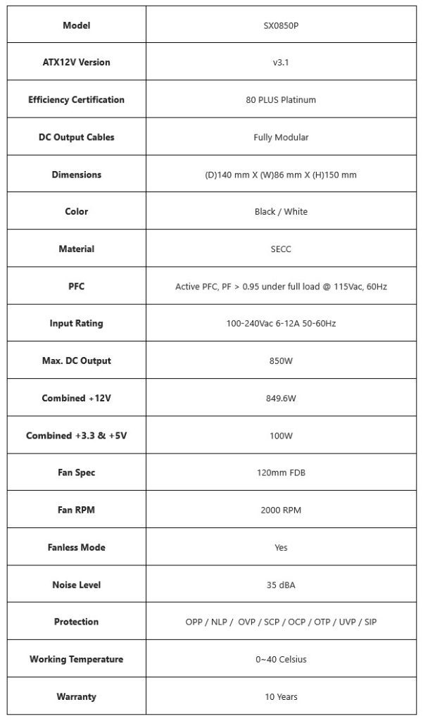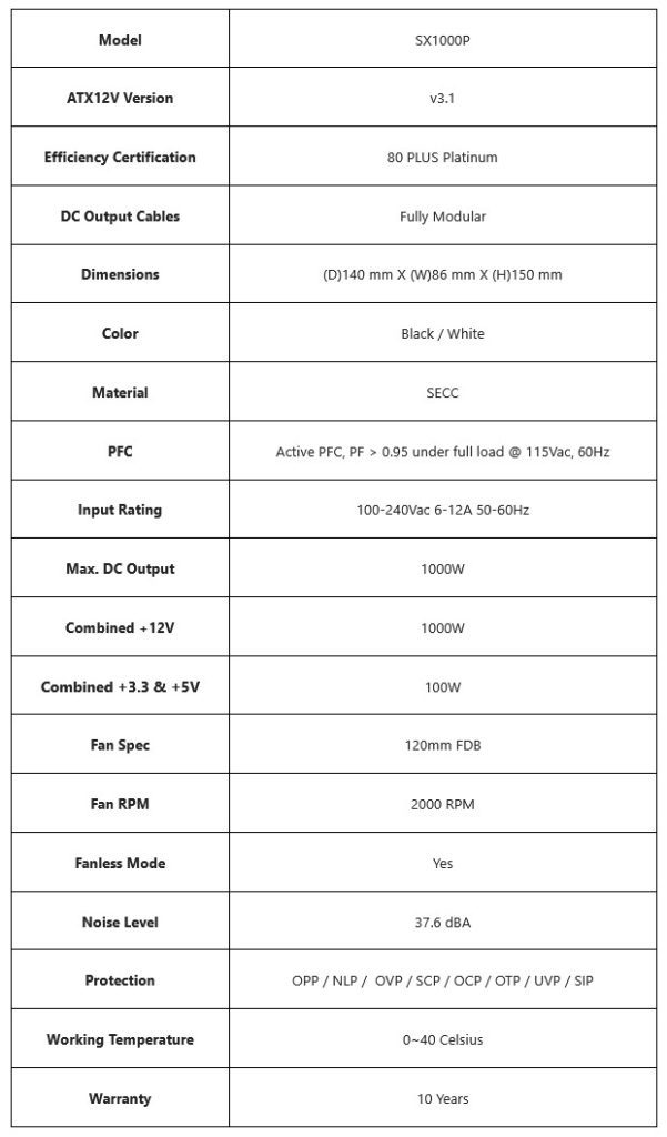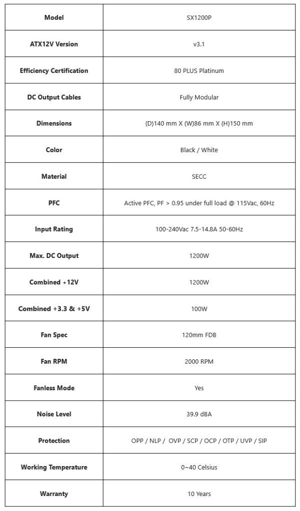 Dengan sertifikasi 80 Plus Platinum, PSU SX Series memastikan efisiensi tinggi yang mengurangi panas berlebih dan konsumsi daya sia-sia. Kepatuhan terhadap ATX 3.1 menjamin kompatibilitas dengan konfigurasi masa kini dan mendatang. Model 1000 W dan 1200 W turut menyertakan kabel 12V-2×6 ke dual 6+2 PCIe, menambah fleksibilitas untuk perangkat tambahan selain GPU.