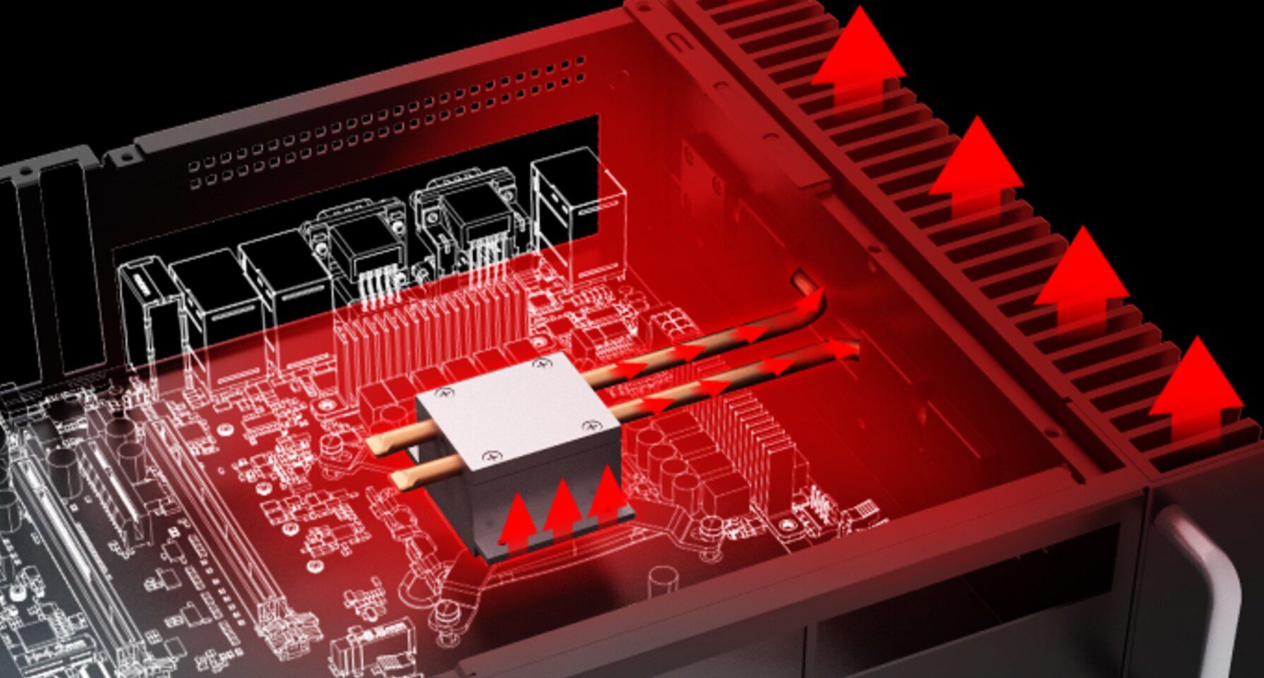 Desain ini memungkinkan pembuangan panas tanpa komponen bergerak, sehingga mengurangi getaran dan meningkatkan keandalan saat beroperasi 24/7.