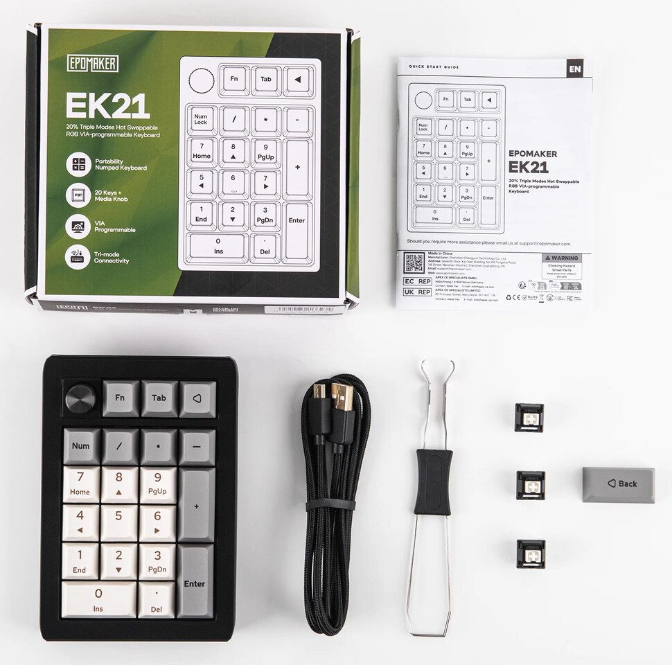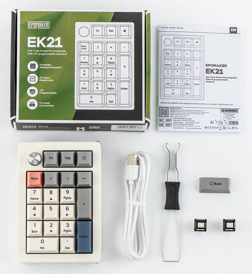 EK21 mengusung desain gasket-mount, knob aluminium berkualitas tinggi, dan baterai 1000 mAh yang mempertahankan keseimbangan antara portabilitas dan kenyamanan mengetik. Dengan dukungan konektivitas triple-mode di Windows, macOS, dan Android, perangkat ini sangat cocok untuk desainer, produser musik, hingga analis data yang membutuhkan input numerik dan kontrol yang presisi.