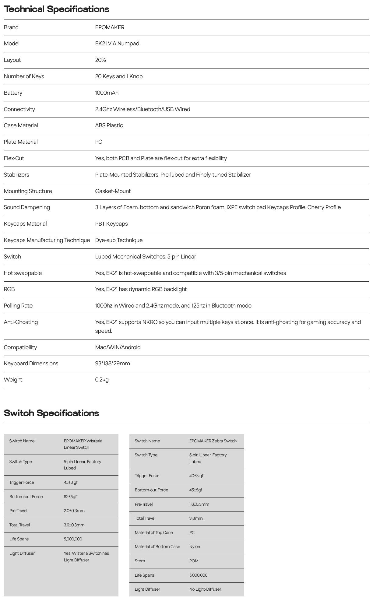 EK21 mengusung desain gasket-mount, knob aluminium berkualitas tinggi, dan baterai 1000 mAh yang mempertahankan keseimbangan antara portabilitas dan kenyamanan mengetik. Dengan dukungan konektivitas triple-mode di Windows, macOS, dan Android, perangkat ini sangat cocok untuk desainer, produser musik, hingga analis data yang membutuhkan input numerik dan kontrol yang presisi.