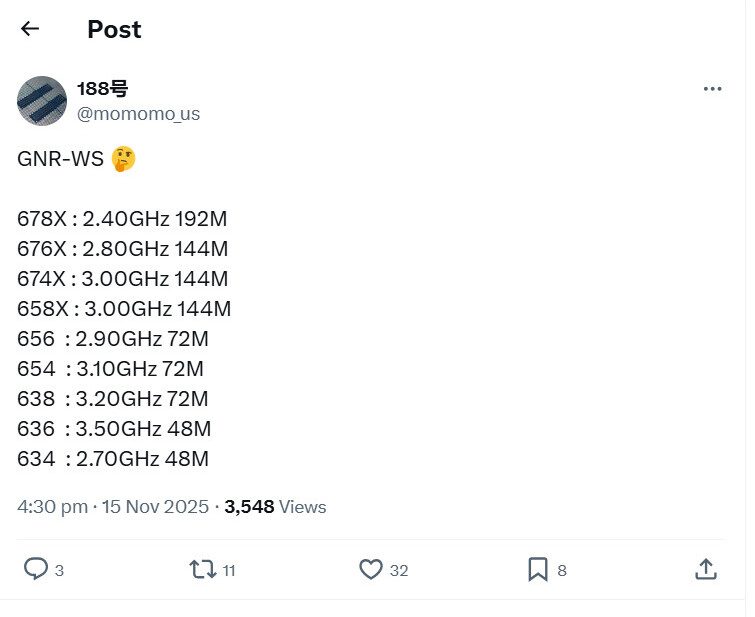 Intel dikabarkan tengah mempersiapkan lini prosesor workstation kelas atas terbaru yang masuk dalam keluarga Granite Rapids-WS. Kebocoran terbaru dari seorang pembocor perangkat keras yang cukup dikenal memperlihatkan daftar SKU awal, lengkap dengan konfigurasi cache L3 serta kecepatan clock yang diperkirakan akan menjadi tulang punggung Intel dalam upaya kembali menguasai segmen HEDT (High-End Desktop) workstation.