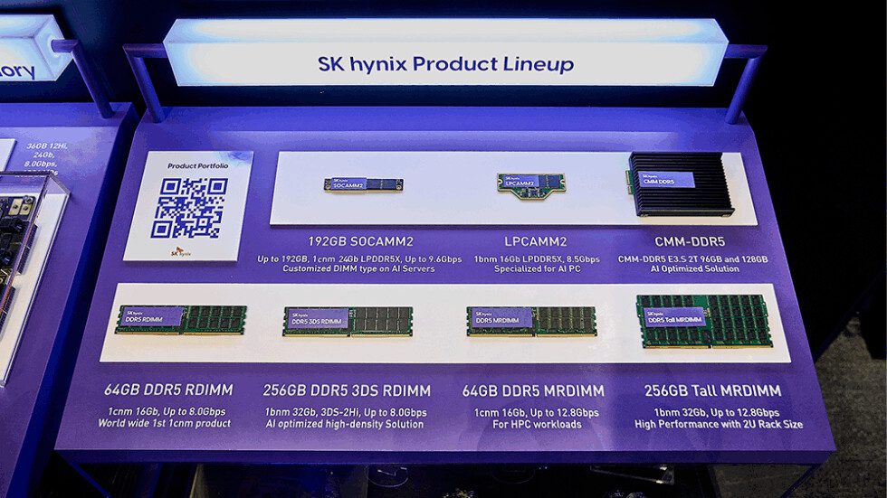 - AI-D O (Optimization): DRAM hemat daya dan berkinerja tinggi seperti MRDIMM, SOCAMM2, LPDDR5R