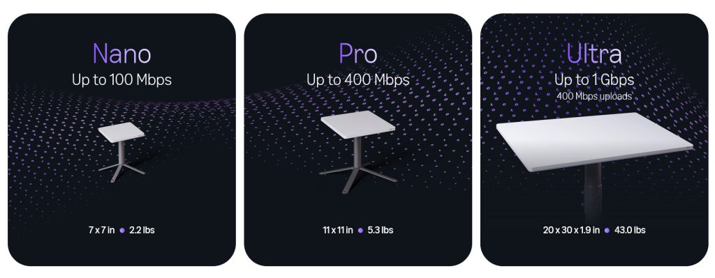 - Leo Nano – antena ringkas berdiameter 7 inci, mendukung unduhan hingga 100 Mbps