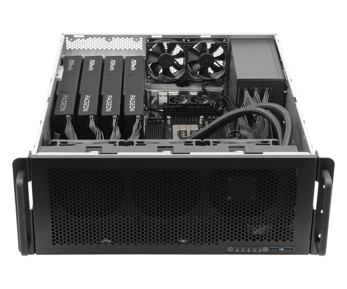 ASRock tengah mempersiapkan langkah besar untuk masuk ke pasar workstation dengan meluncurkan produk baru yang ditujukan bagi kebutuhan akselerasi AI lokal. Workstation 4U ini, bernama GAI4G-R9700, dapat digunakan sebagai sistem rack-mount maupun desktop mandiri. Perangkat ini menggabungkan CPU AMD Ryzen Threadripper 9000 series dengan empat GPU Radeon AI PRO R9700 Creator, menghasilkan total kapasitas VRAM sebesar 128 GB (32 GB per GPU).