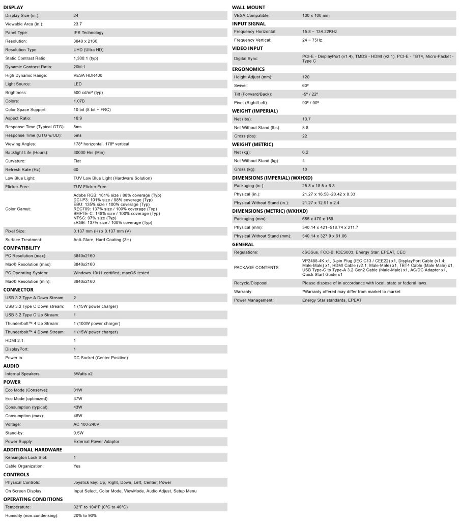 - VP2488-4K: layar 24 inci dengan resolusi 4K dan cakupan 98% DCI-P3, cocok untuk setup multi-monitor dengan footprint fleksibel.