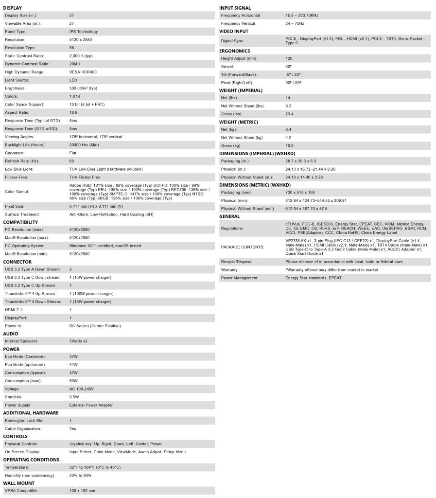 - VP2788-5K: layar 27 inci dengan resolusi 5K dan cakupan 99% DCI-P3, pemenang iF Design Award, ideal untuk workflow kreatif kelas atas.