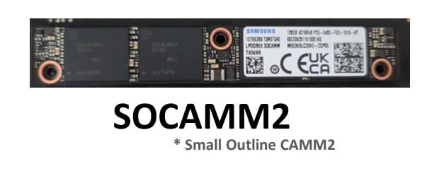 - SOCAMM2: varian DDR5 CAMM2 dengan outline lebih ramping, mengurangi footprint PCB.