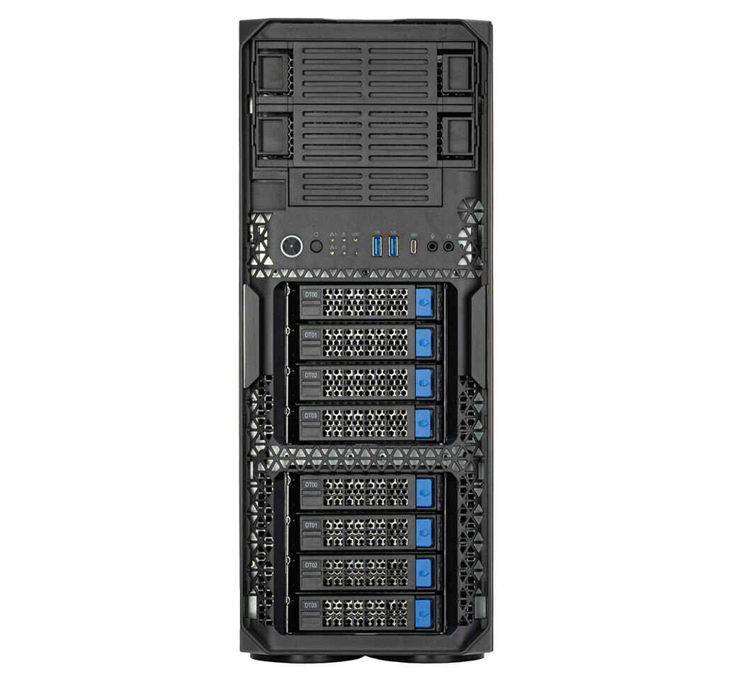 - 2 unit drive cage lepas-pasang: masing-masing 4-bay, mendukung hot-swap HDD SAS 12 Gbps ukuran 3.5 inci