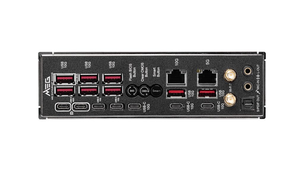 Dalam hal spesifikasi, motherboard ini menawarkan dukungan USB4 dengan kecepatan hingga 40 Gbps, didukung total 13 port USB 3.2 Gen 2 baik tipe-A maupun tipe-C. Untuk konektivitas jaringan, MSI menyematkan dua opsi LAN kabel berkecepatan tinggi, masing-masing 10 GbE dan 5 GbE, serta dukungan Wi-Fi 7 generasi terbaru. Sistem audio onboard yang digunakan juga berada di kelas premium, menyasar pengguna yang mengutamakan kualitas suara tanpa kompromi.