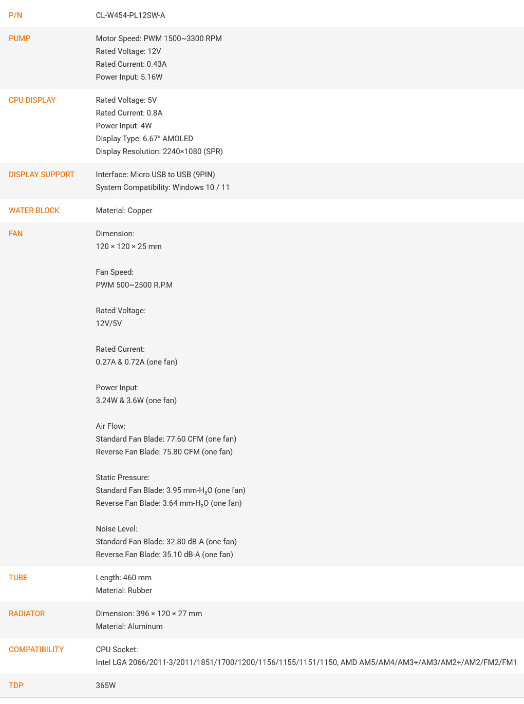Radiator setebal 27 mm dipadukan dengan ruang tembaga 20 mm yang diperkuat, memberikan efisiensi pembuangan panas dalam bentuk yang relatif ramping. Pompa berkualitas tinggi dan base tembaga presisi memastikan sirkulasi cairan optimal, dengan dukungan TDP hingga 365 watt untuk menjaga suhu tetap stabil dalam penggunaan jangka panjang.
