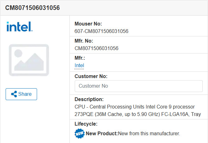 Daftar tersebut dilaporkan berasal dari listing prematur milik Mouser Electronics cabang Inggris. Tiga prosesor yang tercantum merupakan produk OEM/tray yang ditujukan untuk pasar integrator dan sistem rakitan, bukan penjualan ritel langsung ke konsumen.
